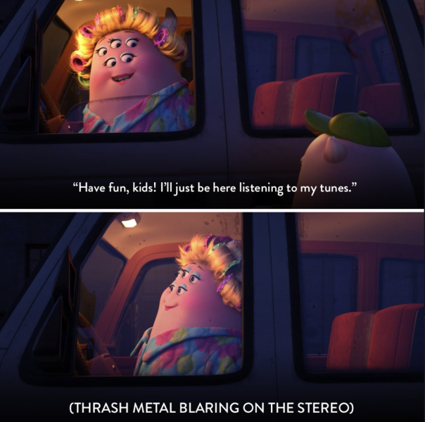 And, from Monsters University, one reader said the band should be switched to “whatever band Squishy’s mom is listening to” when she’s waiting for the kids in her mini van! This would be absolutely hysterical and we are here for it.