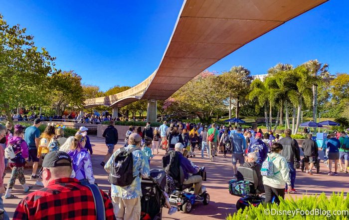 We arrived at the entrance to EPCOT a few minutes before Early Entry began, around 9:30AM. There were big crowds there for Early Entry, but the lines to get into the park moved quickly.