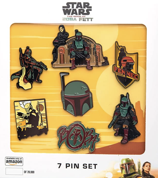 If you’re looking for some more pins to add to your collection, check out this set for The Book of Boba Fett. It comes with 7 enamel pins and an officially licensed box. It’s also an Amazon Exclusive, so you won’t find it anywhere else!