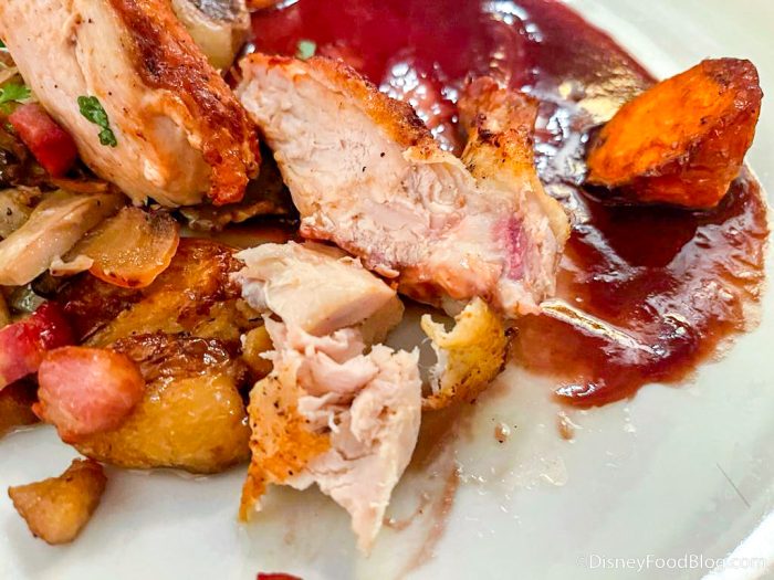 The potatoes did have a fatty bacon mixed in, which brought a nice smokiness to them, and we did enjoy the red wine sauce. But, overall, this wasn’t one of our favorite dishes of the night and isn’t one we’d rush to eat again.