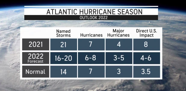 Researchers at Colorado State University are also predicting an above-average Atlantic hurricane season for 2022. They predict 19 named storms and 9 hurricanes, with 4 of the hurricanes expected to be major. For reference, a normal hurricane season has 14 named storms and 7 hurricanes.
