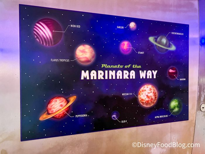 The idea is that these are all planets of the Marinara Way, and you can see where all of the planets are in the solar system on one poster. Be sure to pay attention to the details in this one because you might recognize that some of the planets look strikingly similar to common Italian eats and toppings!