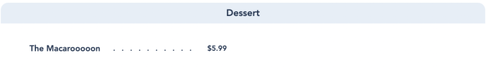 And, we couldn’t leave Alien Pizza Planet without getting the Toy Story-themed dessert that we mentioned earlier — The Macarooooon! You might recognize this green alien macaron from the Disneyland Pixar Fest and we’ve also tried a special Santa version of the treat for the holidays, but this iconic (and delicious) treat is on the menu here year round for $5.99.