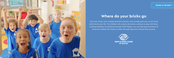 LEGO says they work closely with multiple donation partners who give your LEGOs a new life, like the Boys and Girls Clubs of Boston and Teach for America.
