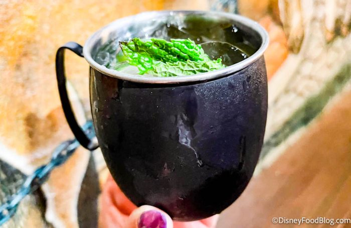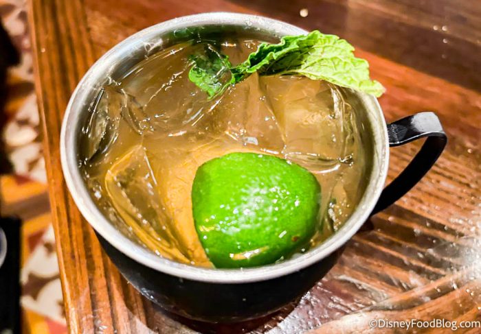 This drink isn’t new (a Cast Member told us it’s been around for a couple of months), but we’ve been distracted by some other new drinks here and haven’t had the chance to try it out yet! Now, we’re happy to remedy that omission. The Oaxacan Mule is made with Ilegal reposado mezcal, Ancho Reyes chile liqueur, fresh lime juice, and Fever-Tree Ginger beer. It costs $20.