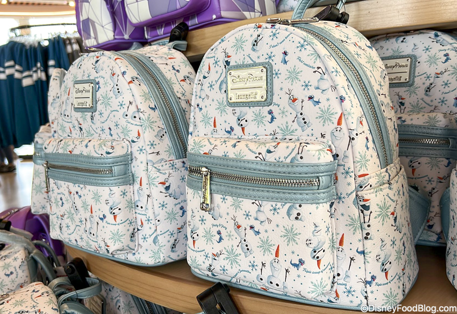 And speaking of backpacks, Frozen fans are sure to love this new Olaf design! It’s $75 and has a print of snowflakes, Olaf, and the adorable little fire spirit, Bruni. This one is perfect to parade around the Norway pavilion.