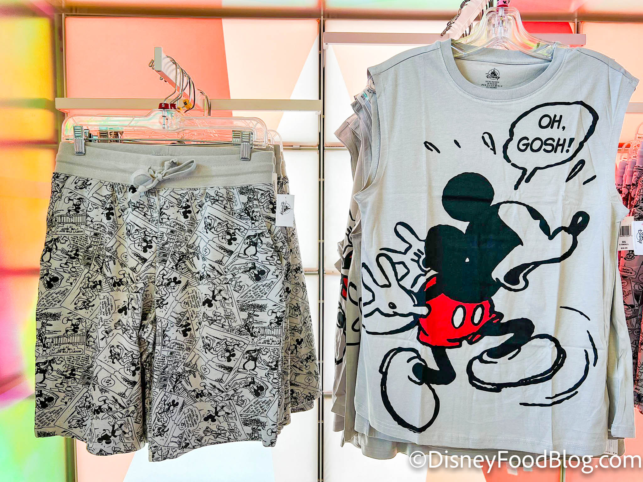 Need some rockin’ new outfits for the summer? Well, EPCOT has you covered! First up, there’s a matching Mickey Mouse tank top and shorts set with a fun cartoon print. You can get each item for $36.99.