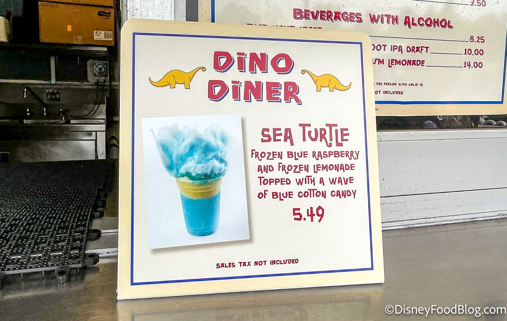 During a visit to Animal Kingdom today, we stopped by the Dino Diner in DinoLand U.S.A., where you can find typical theme park foods like churros, hot dogs, and sometimes, a cotton candy drink.