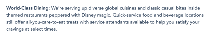 Disney also states that “service attendants [are] available to help satisfy your cravings at select times.”
