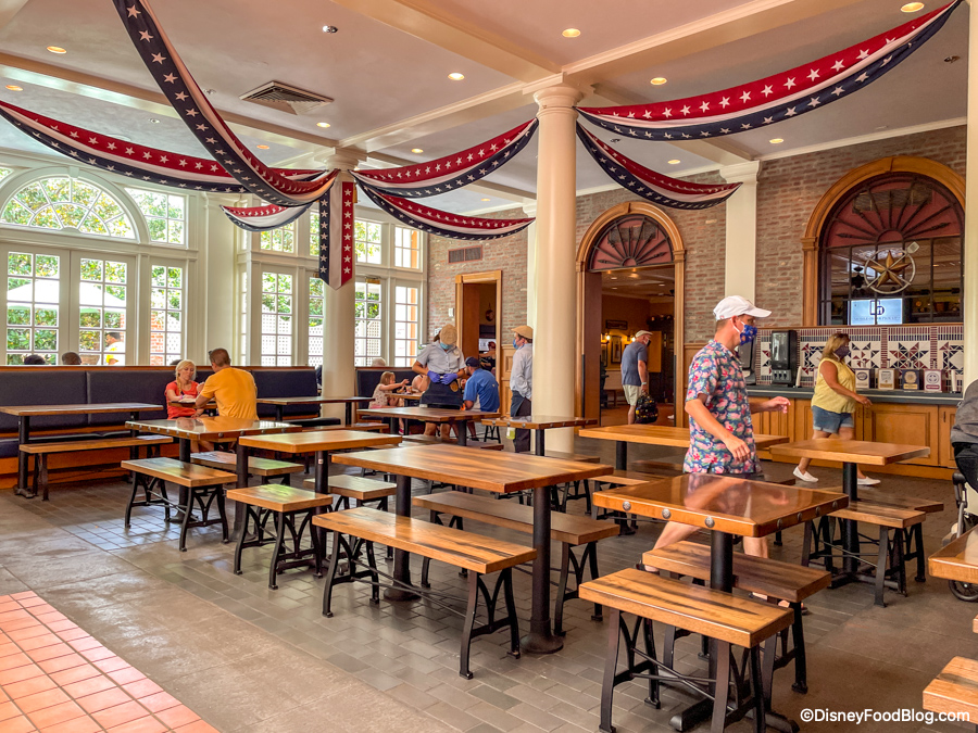 Regal Eagle Smokehouse opened in the American Adventure pavilion of EPCOT in February of 2020, replacing the former Liberty Inn. This quick service spot serves American BBQ, craft brews, cocktails on tap, and has a ton of indoor and outdoor seating on a beautiful patio.