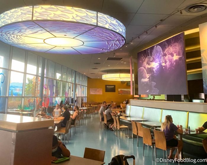 It has the same theme as the rest of the hotel, where animation and artistry take center stage. The dining room is covered in landscapes from Disney movies, like the African plains from The Lion King or the coral reef from Finding Nemo. There are 4 distinct areas in the dining room, with 1 for each of the movies featured at this hotel.