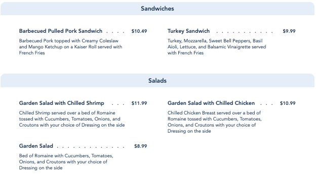 - You’re on a budget and looking for a cheaper Disney meal. All of the meals at this restaurant are $15 or less, even for adults, so it’s a good budget-friendly option!