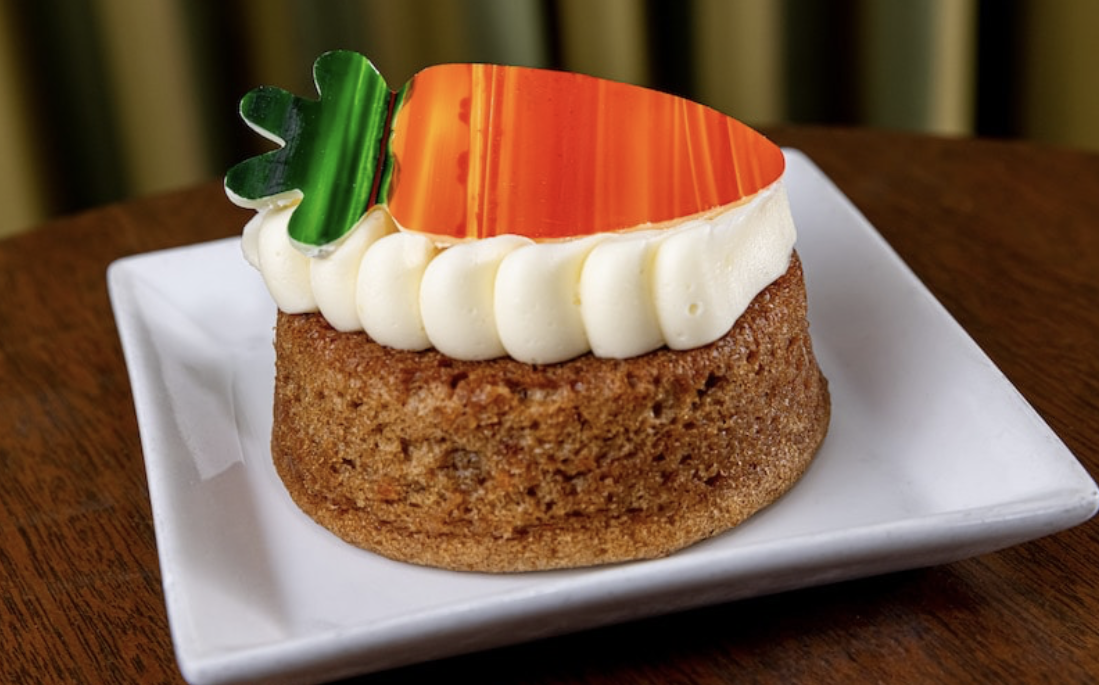 - Carrot Cake Cupcakes: Mini carrot cake cupcake topped with cream cheese icing, coconut, and a sugar carrot (New)
