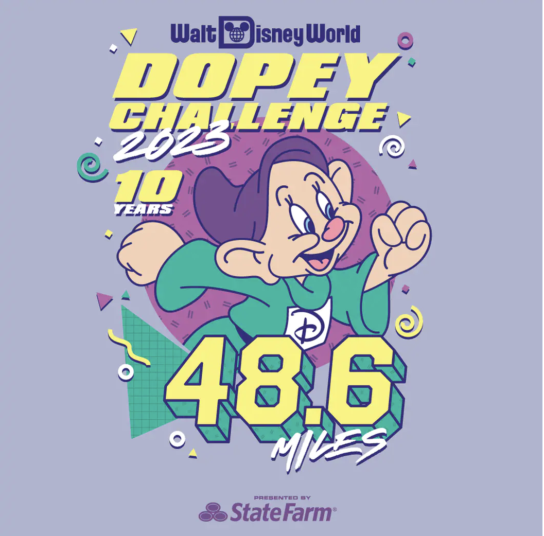 The theme for the runDisney 2023 Walt Disney World Marathon Weekend is Retro ’90s! Why? runDisney turns 30 in 2023, and it’s time to celebrate its birth year! We’re talking 1980s/1990s patterns (triangles and wiggly lines, anyone?) and bright colors. The 2023 Marathon Weekend is presented by State Farm.