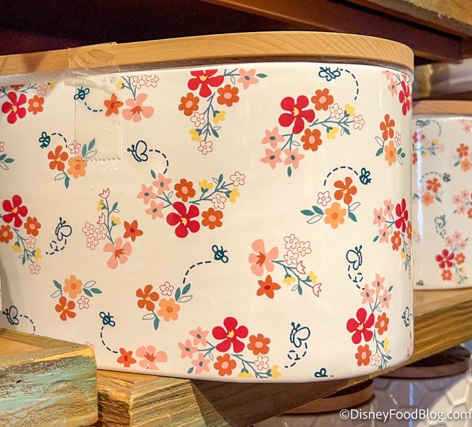 We also found a Pooh Bread Box for $39.99. The side of it is covered in a floral print…