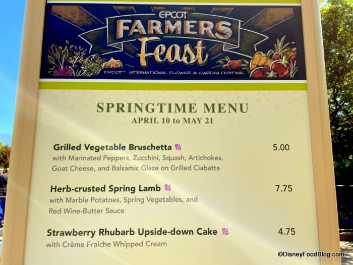 After the Springtime Menu is gone, you can try the Summer Solstice Menu from May 22nd through July 4th. We will, of course, be back to check that one out and bring you a full review! The EPCOT Flower and Garden Festival is running until July 4th this year, so you have plenty of time to check out all of the food booths. Stay tuned to DFB for more Disney World food news and updates.