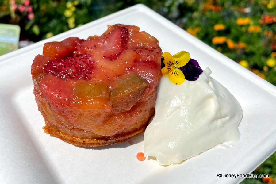 Finally, we have the returning Strawberry Rhubarb Upside-down Cake with crème fraîche whipped cream for $4.75. This was a hit again for us this year. The strawberry and rhubarb topping tastes very fresh and not too sweet, but just sweet enough to balance out the little bit of tartness you get with each bite of fruit.