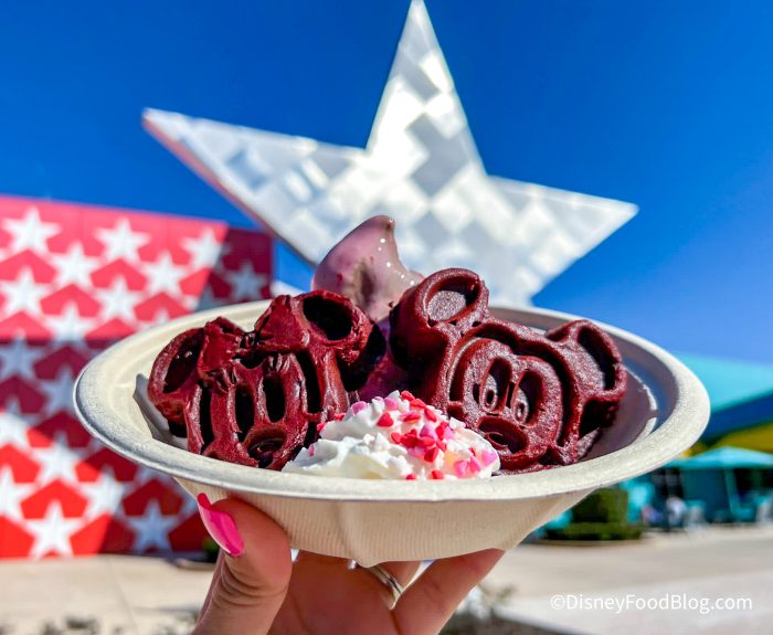 Head to Hollywood Scoops in Disney’s Hollywood Studios first thing in the morning if you want a little Mikey waffle for breakfast! Depending on the season and availability, Hollywood Scoops may serve Mickey waffles with blueberries and whipped cream instead of the plain Mickey waffles. If you’re not a fan of blueberries, take a look at the menu before you place your order!