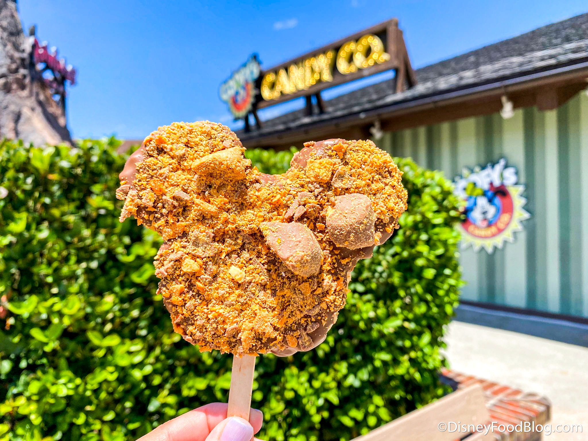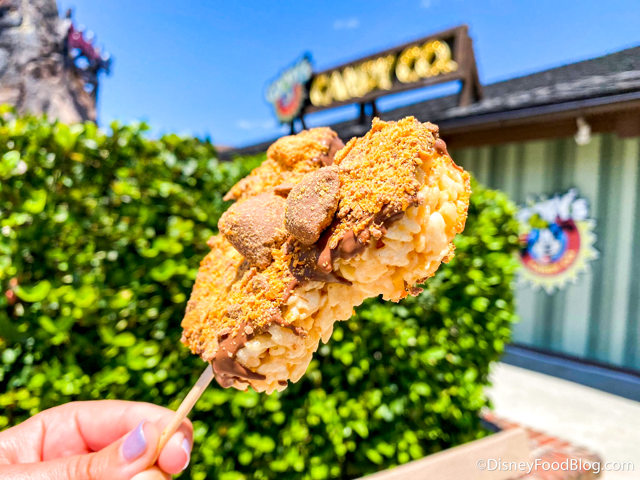 Next, we got a Mickey Crisped Rice Cereal Treat (AKA a Rice Krispie Treat) dipped in Milk Chocolate and topped with Crushed Butterfingers!