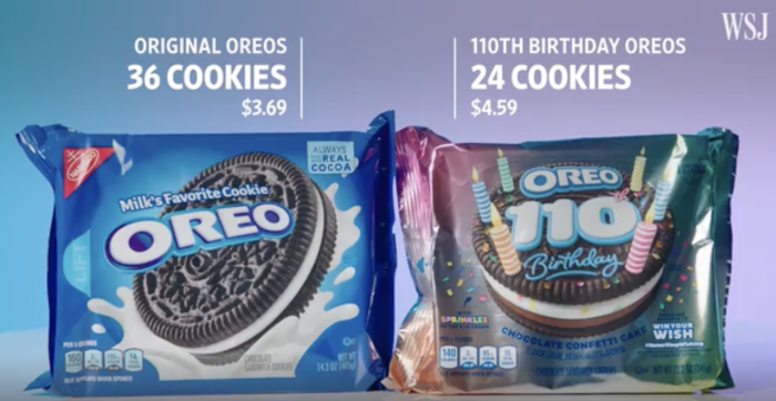 Some ways to recognize shrinkflation is when a company redesigns the packaging of a product. This way, they can sneak in the different, smaller size and it’s harder for people to make a direct comparison to the old product. This also happens with things like Oreo limited-edition flavors — the packages of the limited-edition flavors are smaller than normal Oreos but actually cost more.