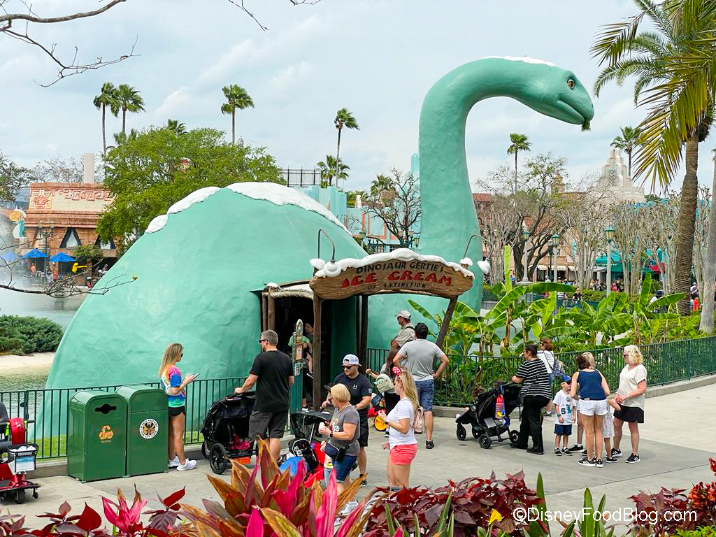 At Dinosaur Gertie’s, you can get everything ice cream from soft serve in a waffle cone to a Mickey Premium Bar!