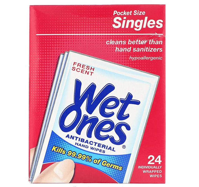Click here to buy some Wet Ones Singles Antibacterial Cleansing Wipes