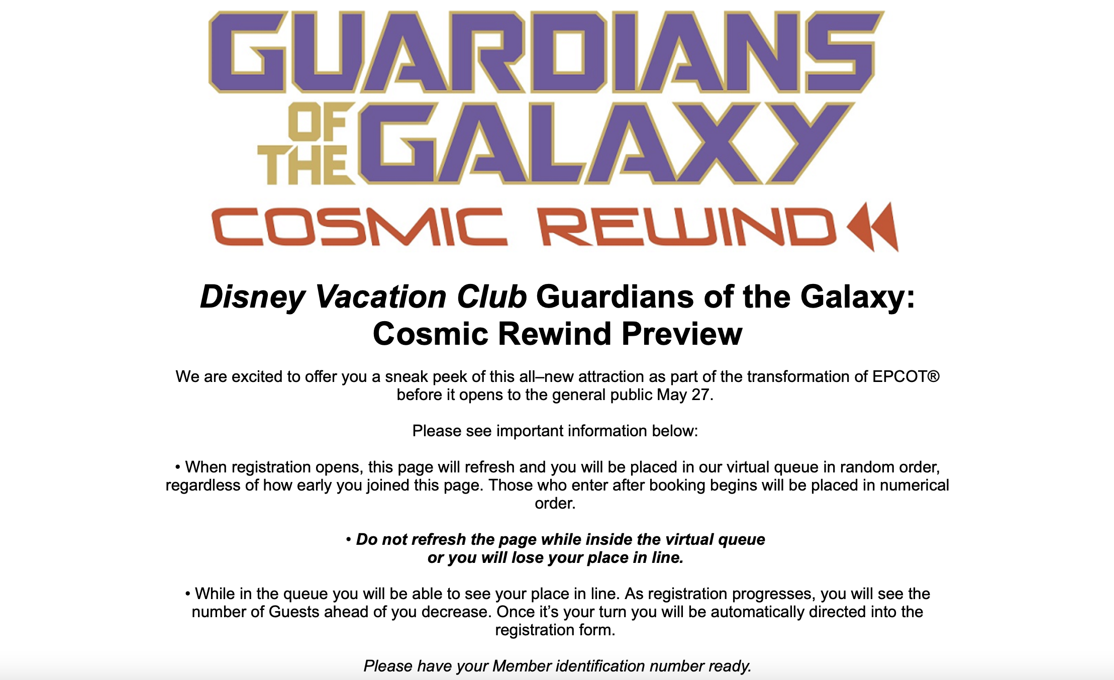 Disney Vacation Club Members can register for their early preview of Guardians of the Galaxy: Cosmic Rewind TOMORROW April 14th, 2022 at 9AM EST.