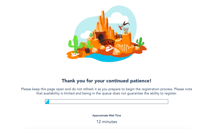 Right now, Annual Passholders can book a reservation to preview Guardians of the Galaxy: Cosmic Rewind. Previews are available on May 8th through the 10th, May 15th and 16th, and May 18th through the 21st. Reservations are subject to availability. To get your reservations, head to Disney’s online queue and wait for your turn. There will be an approximate wait time listed on the page.