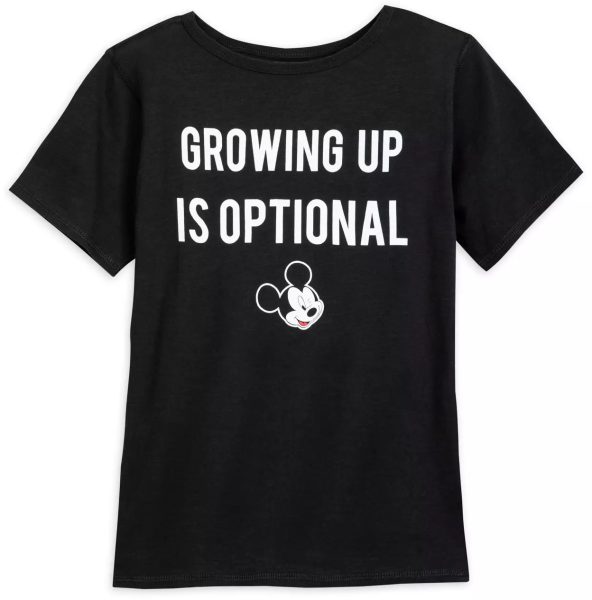Among the other options in this collection is a Mickey-themed “Growing up is optional” tee.