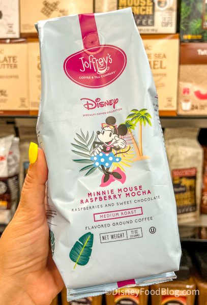 The next one is the Minnie Mouse Raspberry Mocha! This one is also a medium roast, and it’s flavored with raspberries and sweet chocolate. This bag has a picture of Minnie Mouse on the beach, and is also available for $7.99!