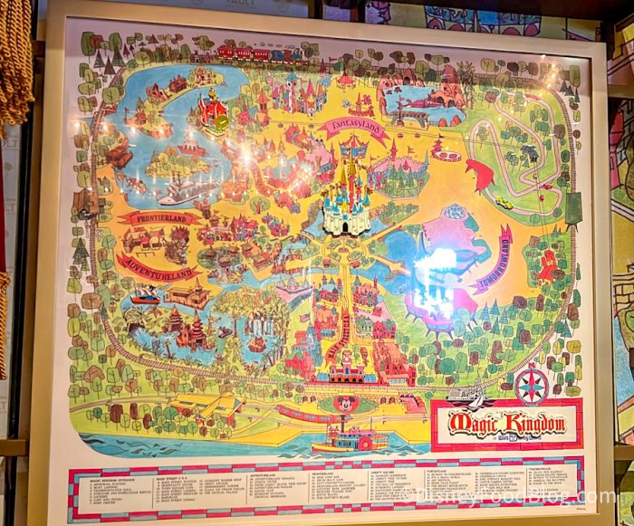 You can shop the Vault Collection on Main Street, U.S.A. in Magic Kingdom. Over in the Main Street Cinema, we spotted this beautiful retro map of Magic Kingdom!