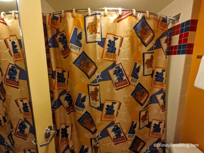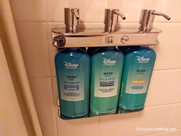 Mounted inside the shower are the fan-favorite Disney H2O toiletries.