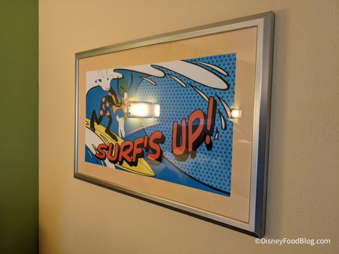 The room has a few Disney and sporty touches, like this picture of Goofy surfing…