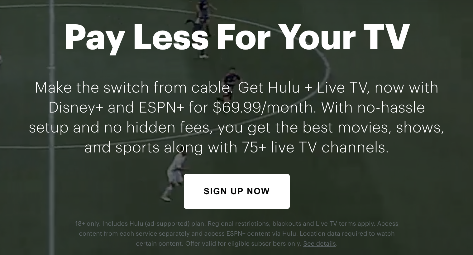 If you’d prefer not to have Disney+, ESPN+, and access to the Hulu streaming library, there is an option just to have Live TV, but it’ll only save you a dollar per month, as it’s priced at $68.99/month. And, if you want Hulu + Live TV without ads, it’ll cost ya $75.99/month (note that this also comes with Disney+ and ESPN bundled in).