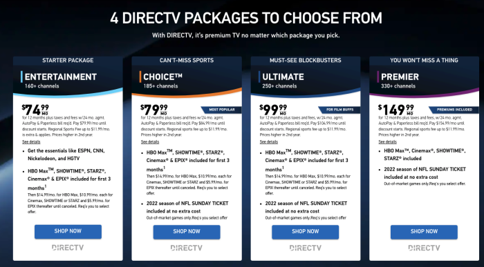 Price is also a factor to consider. Right now, the Hulu + Live TV, Disney+ and ESPN+ bundle is $69.99 per month. DirectTV on the other hand, has packages that start at $74.99.