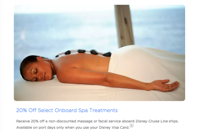 Cardholders can get discounts on select Digital Photo Packages, select merchandise purchases on Disney Cruise Line ships, Castaway Cay getaway packages, and even select onboard spa treatments!
