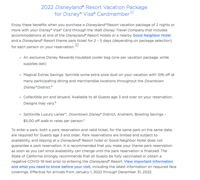 Cardholders also currently have access to a special 2022 Disneyland Resort Vacation Package that comes with a Disney Rewards insulted cooler bag, a collectible pin and lanyard, and MORE!