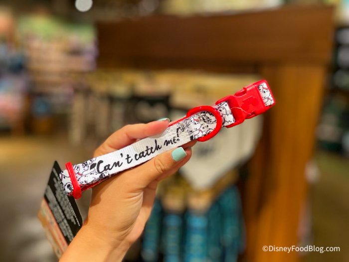 The last pet-related item we saw at Riverside Depot was this collar themed after 101 Dalmatians. The collar is red and has some Dalmatians on it along with the words “Can’t catch me!” It is $18.