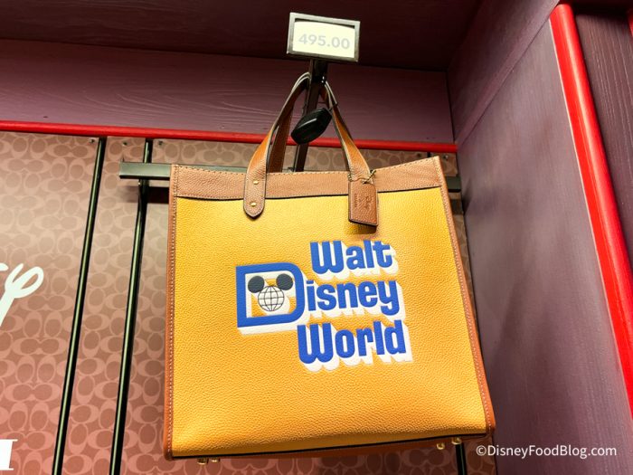 And finally at Discovery Trading, we spotted this pricey Coach bag! It says “Walt Disney World” on the front and is a mustard yellow color.