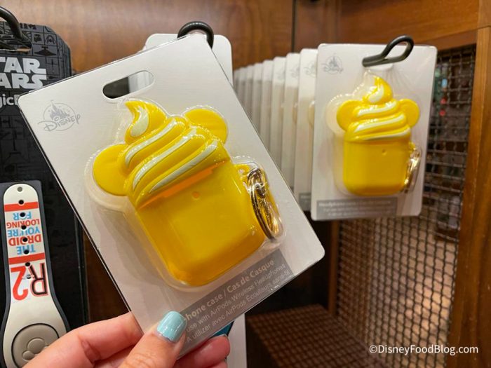 We also found what might arguably be the best way to store your wireless headphones. This Dole Whip Headphone Case is a yellow case with a Dole Whip swirl on top. The swirl also has two Mickey ears stick out of it. It is $20.