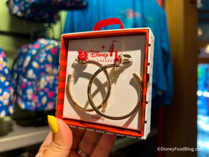 The second pair are these gold hooped earrings with a red Minnie Mouse bow on top! Both pairs of earrings are $19.99.