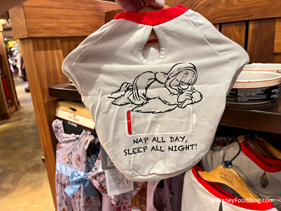At Riverside Depot, we saw a ton of new pet stuff! First off, we saw this shirt for dogs that has a picture of Sleepy and says “Nap all day, sleep all night!” This shirt is $24.99.
