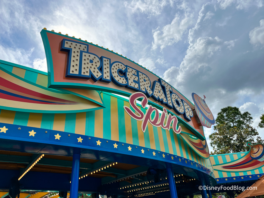 Also in Chester & Hester’s Dino-Rama, the lightbulbs on the sign for TriceraTop Spin are missing! There’s just holes where they used to be.