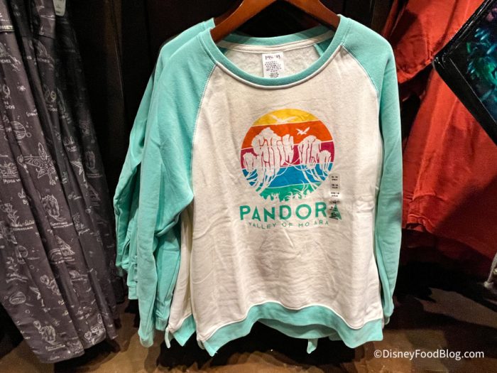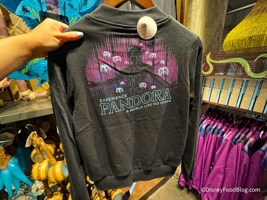 This zip-up sweater has the word “Pandora” on the front with some of the woodsprites that can be seen on Flight of Passage.