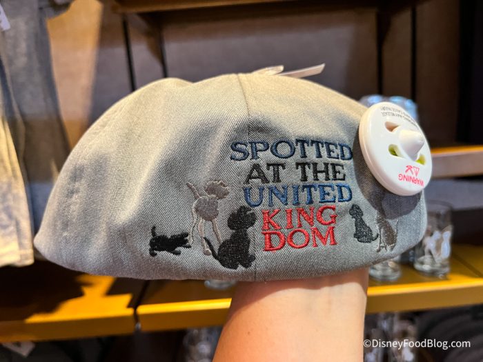 It’s gray and has dogs and the words “Spotted at the United Kingdom” embroidered on the back. It is available for $24.99.