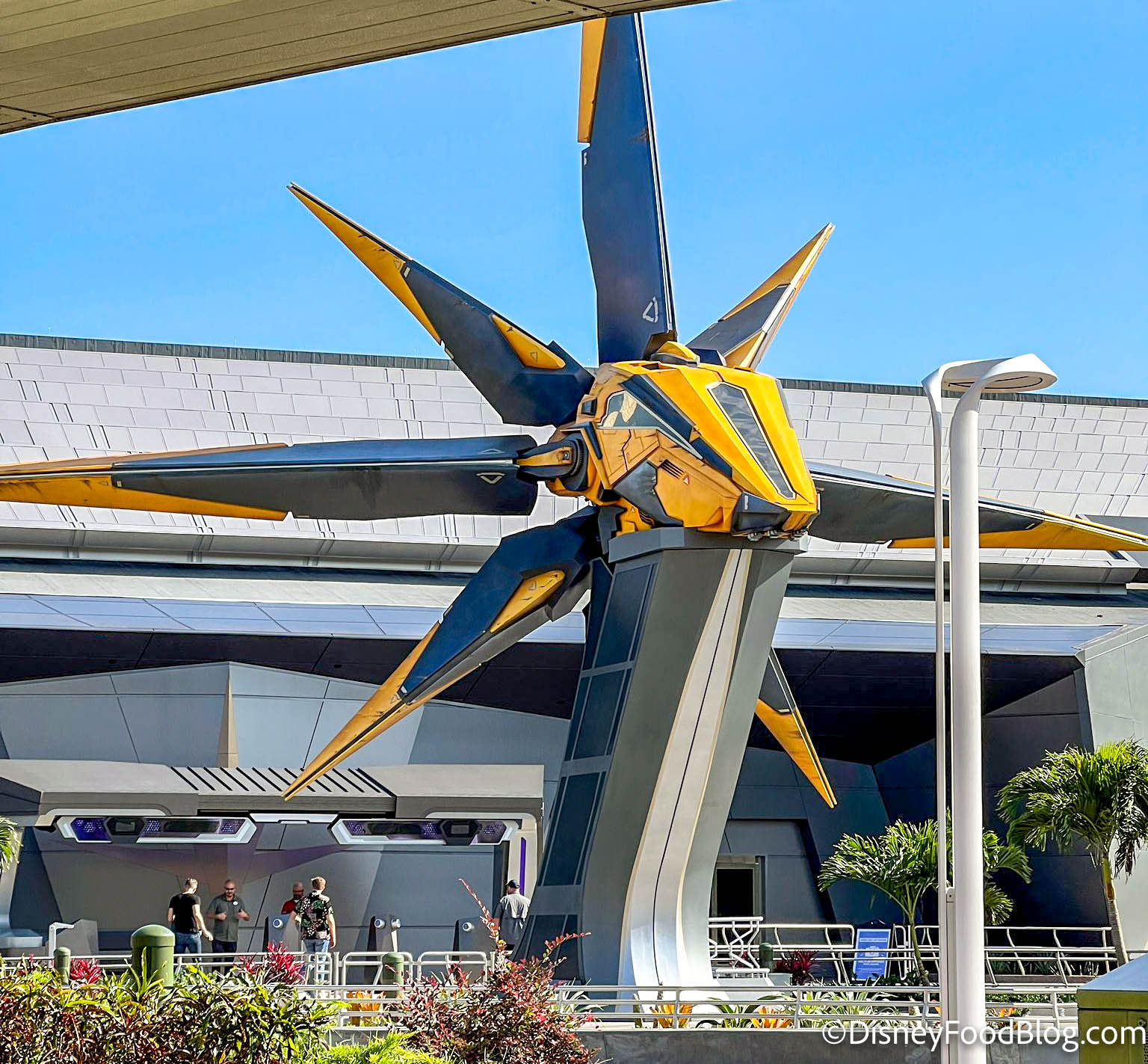 We were walking into EPCOT today when we saw a little hint of the Nova Corps Starblaster peeking out. We expected to see the usual construction walls surrounding the upcoming attraction, but instead, we were surprised!