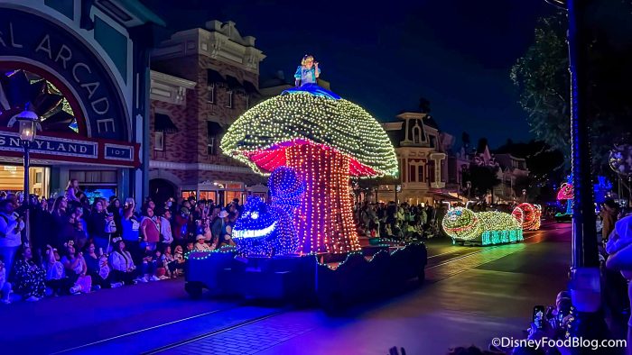 Characters from various films are also featured in the parade – such as Caterpillar from Alice in Wonderland 🐛🍄#Disneyland pic.twitter.com/b83bVZYyly
