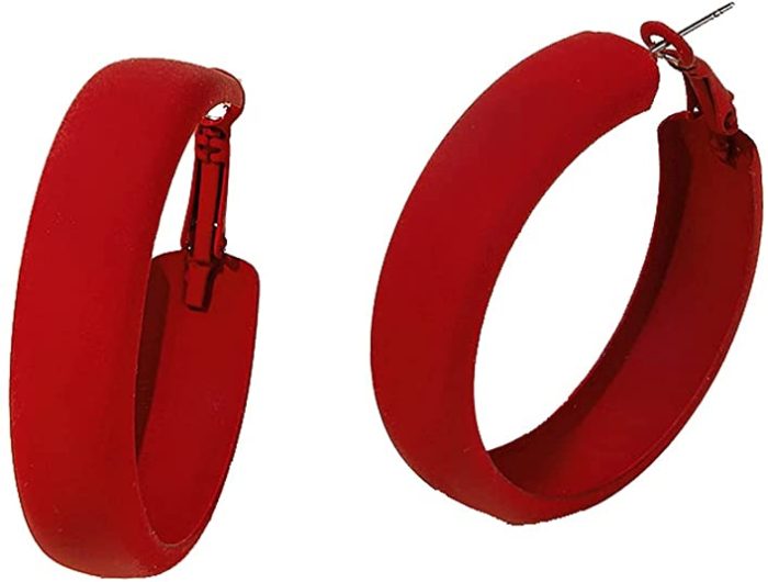 Finally, top off your cute Hei Hei look with chunky red hoop earrings to evoke Hei Hei’s crazy eyes.