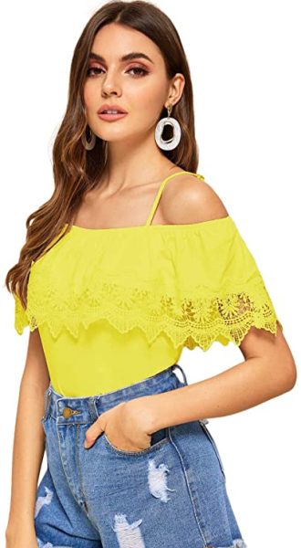 This cold-shoulder top has a cute lace trim and spaghetti straps to beat the heat. It’s priced from $13.99 to $20.99.
