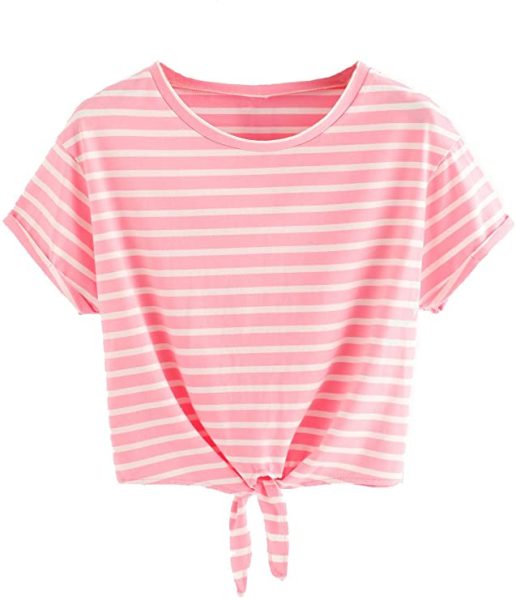 Our next DisneyBound idea comes straight from the Hundred Acre Wood…it’s Piglet! For this look, you’ll want to start with a comfortable t-shirt featuring pink-on-pink horizontal stripes, like this one!